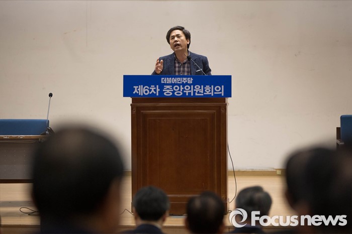 (서울=포커스뉴스) 비례대표 선정을놓고 김종인 비대위 대표가 당무를 거부하는 등 더불어민주당의 내홍이 계속되고 있는 가운데 22일 오전 서울 여의도 국회 의원회관에서 진행 중인 중앙위원회의에서 한 후보자가 비례대표국회의원 후보자 정견발표를 하고 있다.