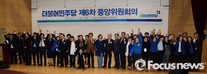 또한 노동 몫으로 2명, 청년 몫으로 2명, 전략지역 몫으로 1명, 사무처 당직자 몫으로 1명을 배정했으며 이 가운데 노동 몫과 청년몫 1명씩 각각 당선안정권과 우선순위(25번 안)에 배치키로 한 바 있다.22일 새벽 서울 여의도 국회의원회관에서 열린 더불어민주당 제6차 중앙위원회의에서 정견발표를 마친 비례대표 후보자들과 이종걸 원내대표, 박영선, 변재일 등 비상대책위원들이 손을 맞잡아 들어올리고 있다.2016.03.22 성동훈 기자