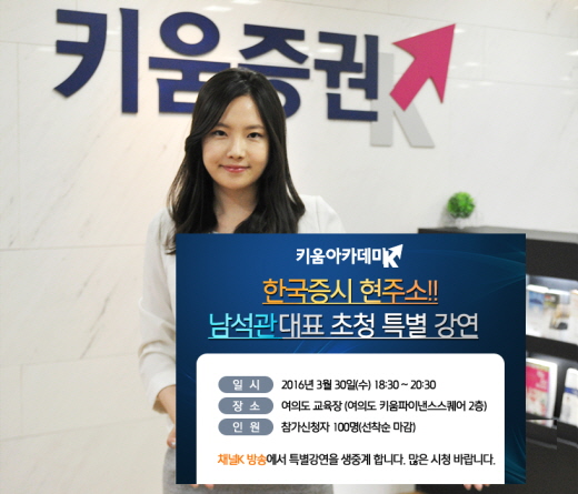 (서울=포커스뉴스) 키움증권은 오는 30일 키움파이낸스스퀘어에 위치한 키움아카데미에 남석관 대표를 초청, 특별 강연회를 개최한다고 22일 밝혔다.