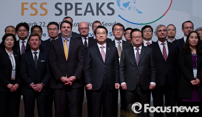 (서울=포커스뉴스) 22일 오전 서울 중구 소공로 롯데호텔에서 진웅섭(앞줄 네번째) 금융감독원장이 외국계금융회사 대상 업무설명회 'FSS SPEAKS 2016'에 참석해 마크 리퍼트(앞줄 왼쪽 세번째) 주한미국대사를 비롯한 외교사절들과 기념촬영을 하고 있다.