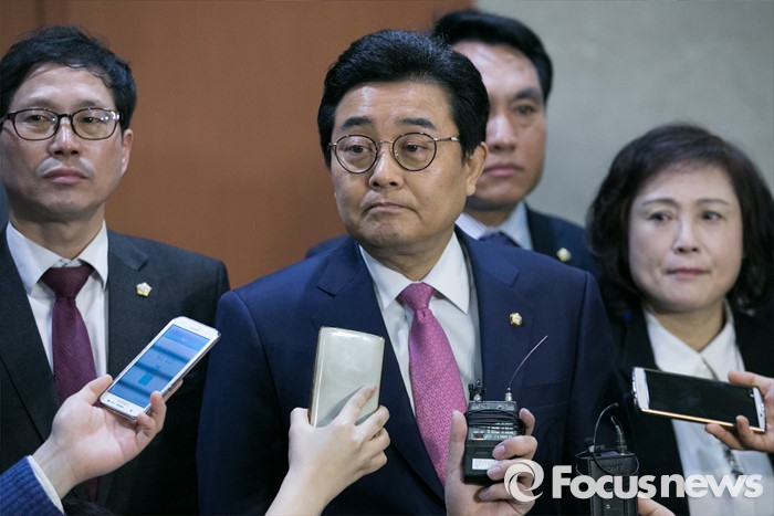 (서울=포커스뉴스) 20대 총선을 앞두고 공천 배제(컷오프)된 전병헌 더불어민주당 의원이 22일 오전 서울 여의도 국회 정론관에서 대선승리를 위한 백의종군 선언 기자회견을 마친 뒤 취재진 질문에 답하고 있다.