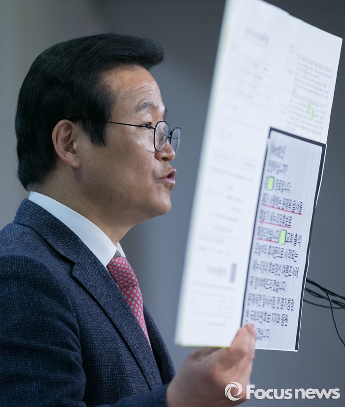 | △ 증거 자료 들고 회견하는 김용판 |