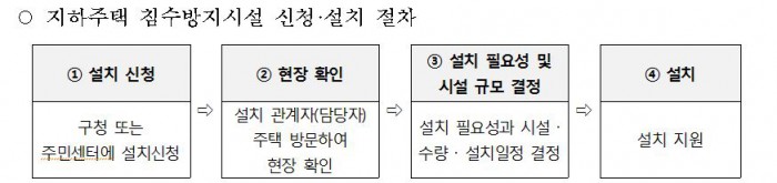 지원 신청이 접수되면 담당 공무원이 현장을 방문해 침수방지시설 설치 필요성 등을 검토한 후 결정하게 된다.