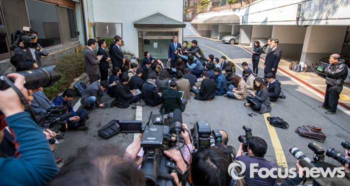 | △ 취재진에 둘러 싸인 문재인 전 대표 |