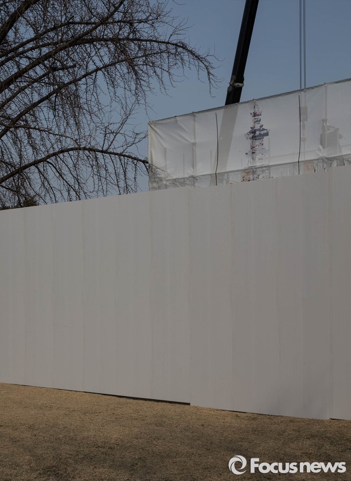 (서울=포커스뉴스) 22일 오후 서울 경복궁 국립고궁박물관 앞뜰에 해체를 앞둔 국보 제101호 법천사지 지광국사탑이 보이고 있다.