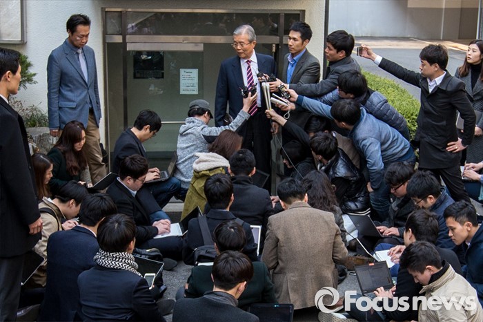 | △ 취재진에 둘러싸인 김종인 대표 |