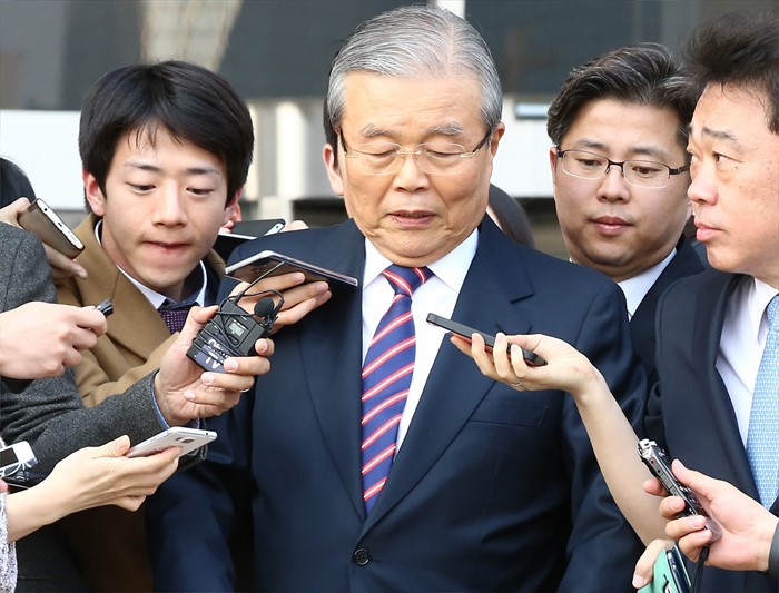 | △ 취재진 질문에 말 없는 김종인 |