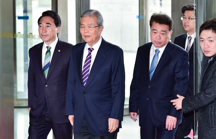 (서울=포커스뉴스) 20대 총선 비례대표 후보자 순번 등 논란으로 당무를 거부했던 김종인 더불어민주당 비대위 대표가 22일 오후 서울 여의도 국회에서 열린 비공개 회의에 참석하고 있다. 왼쪽부터 박수현 비서실장, 김 대표, 김성수 대변인.