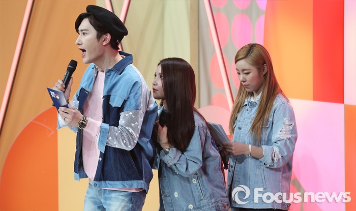(서울=포커스뉴스) 22일 오후 서울 마포구 SBS프리즘 타워에서 열린 2016 '더쇼' 생방송 현장에 진행자 조미(왼쪽부터), 솔라, 휘인이 오프닝을 하고 있다.