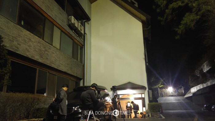 이들은 54분간 회동을 마친 후 밤 11시 24분 쯤 김 대표 자택 앞에서 기자들과 만나 김 대표에게 사의를 표명했다고 밝혔다.