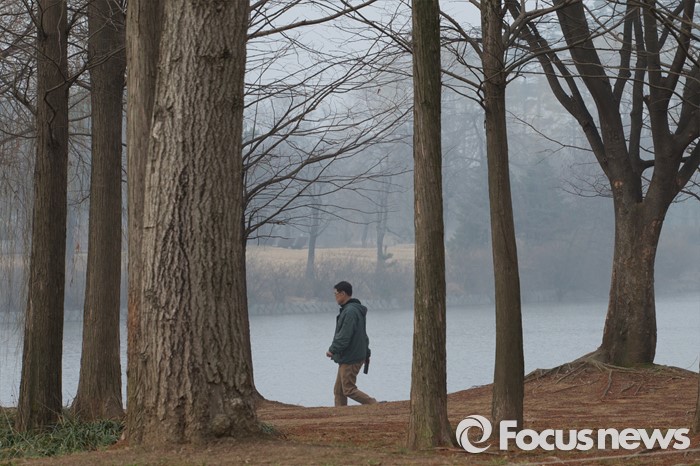 (고양=포커스뉴스) 꽃샘추위가 다시 시작된 23일 오전 경기도 고양시 일산 호수공원에서 한 시민이 운동을 하고 있다. 미세먼지는 수도권에서 아침 한때 '나쁨'이 되겠지만 곧 '보통' 수준으로 회복될 것을 예상한다.