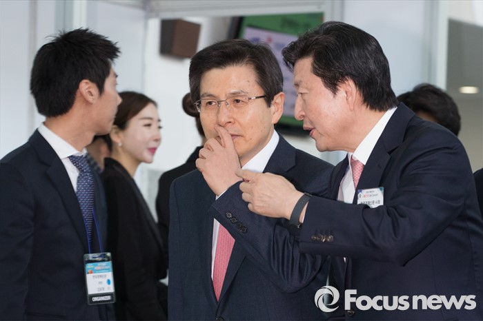 (고양=포커스뉴스) 23일 오전 경기도 고양시 킨텍스 제2전시장에서 열린 2016 대한민국 고졸인재 잡 콘서트(Job Concert)에서 황교안 국무총리가 참석해 김기웅 한국경제신문 사장과 이야기하고 있다.