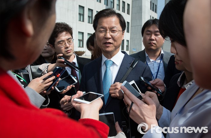 | △ 기자들 질문 받는 천정배 |