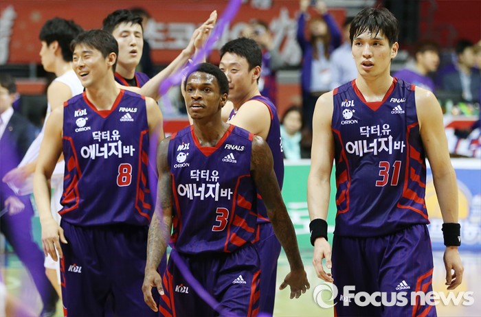 (고양=포커스뉴스) 23일 고양체육관에서 열린 2015-2016 프로농구 챔피언결정전 3차전 오리온-KCC경기에서 KCC에 승리한 오리온 선수들이 기뻐하고 있다.