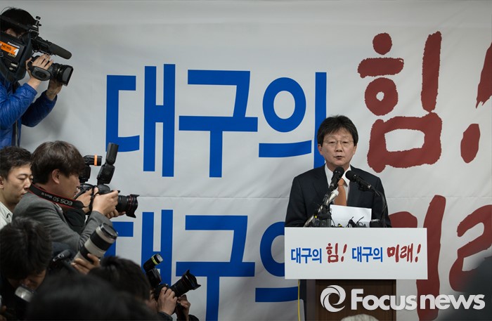 (대구=포커스뉴스) 유승민 의원이 23일 오후 대구 동구 용계동 사무소에서 새누리당 탈당 및 무소속 출마 기자회견을 하고 있다.