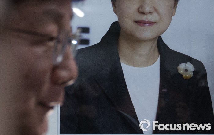 (대구=포커스뉴스) 23일 오후 대구 동구 용계동 사무소에서 새누리당 탈당 및 무소속 출마 기자회견에 앞서 지지자들과 인사를 나누는 유승민 의원 뒤로 박근혜 대통령의 사진이 보이고 있다.