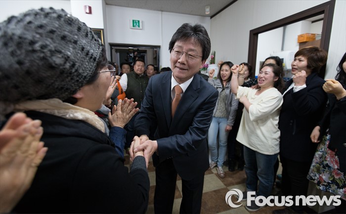 (대구=포커스뉴스) 유승민 의원이 23일 오후 대구 동구 용계동 사무소에서 새누리당 탈당 및 무소속 출마 기자회견에 앞서 지지자들과 악수를 나누고 있다.