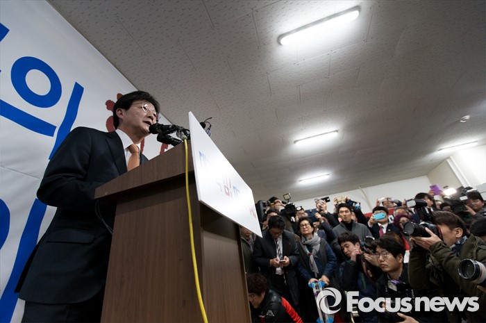 (대구=포커스뉴스) 유승민 의원이 23일 오후 대구 동구 용계동 사무소에서 새누리당 탈당 및 무소속 출마 기자회견을 하고 있다.