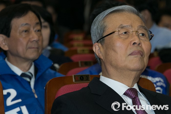 (서울=포커스뉴스) 김종인 더불어민주당 비대위 대표가 24일 오전 서울 여의도 국회에서 열린 20대 총선 공천장 수여식에 참석해 자리하고 있다. 왼쪽은 새누리당을 탈당하고 더불어민주당에 입당한 진영 의원.