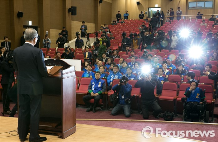 | △ 공천장 수여식 앞서 기자회견하는 김종인 |