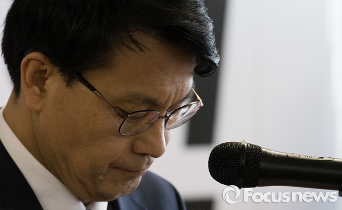 (인천=포커스뉴스) 새누리당을 탈당한 윤상현 의원이 24일 오전 인천 남구 지역구 사무실에서 무소속 출마 선언 기자회견 중 생각에 잠겨 있다.