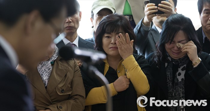 (인천=포커스뉴스) 24일 오전 인천 남구 지역구 사무실에서 열린 윤상현 의원 무소속 출마 선언 기자회견에 참석한 지지자들이 눈물을 흘리고 있다.