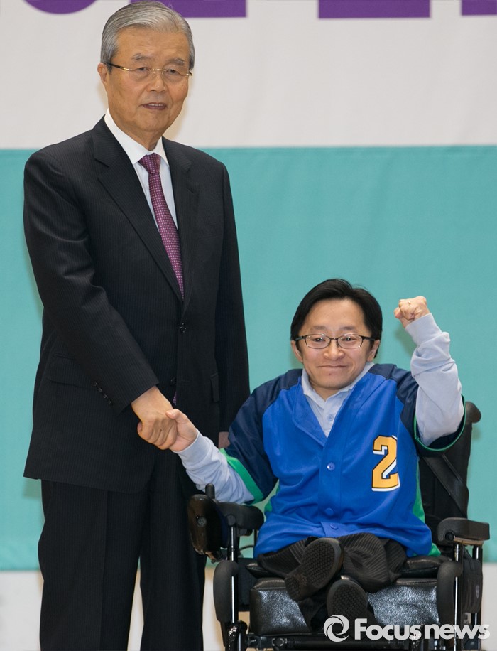 (서울=포커스뉴스) 김종인 더불어민주당 비대위 대표가 24일 오전 서울 여의도 국회에서 공천장 수여식에 참석해 김영웅 비례대표 후보와 기념촬영을 하고 있다.