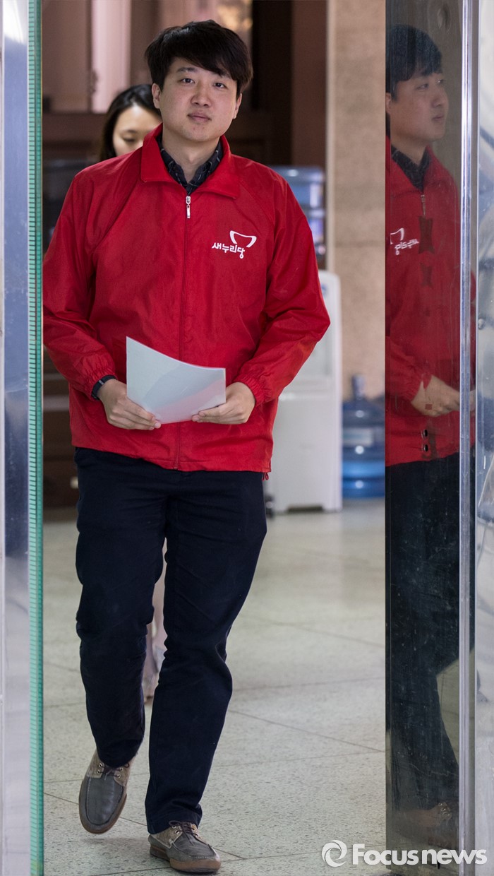 (서울=포커스뉴스) 이준석 새누리당 노원병 후보가 4·13 총선 후보자 등록 첫 날인 24일 오후 서울 노원구선거관리위원회에서 후보등록서류를 들고 발걸음을 하고 있다.