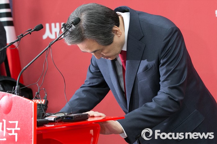 (서울=포커스뉴스) 김무성 새누리당 대표가 24일 오후 서울 여의도 당사 브리핑실에서 기자회견 전 인사하고 있다. 이 자리에서 김 대표는 "서울 은평구(을), 송파구(을), 대구 동구(갑), 동구(을), 달성군 등 최고위 의결이 보류된 5곳에 대한 공천관리위원회의 결정에 대해서 의결을 하지 않기로 결정 했다"고 말했다.