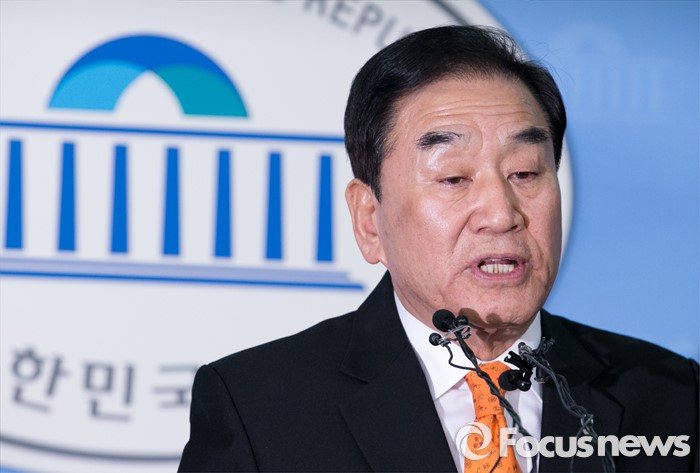 (서울=포커스뉴스) 새누리당을 탈당한 이재오 의원이 24일 오후 서울 여의도 국회 정론관에서 20대 총선 무소속 출마 기자회견을 하고 있다.