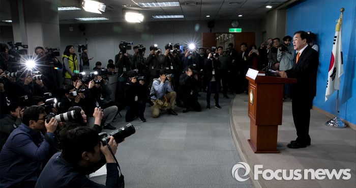 (서울=포커스뉴스) 새누리당을 탈당한 이재오 의원이 24일 오후 서울 여의도 국회 정론관에서 20대 총선 무소속 출마 기자회견을 하고 있다.