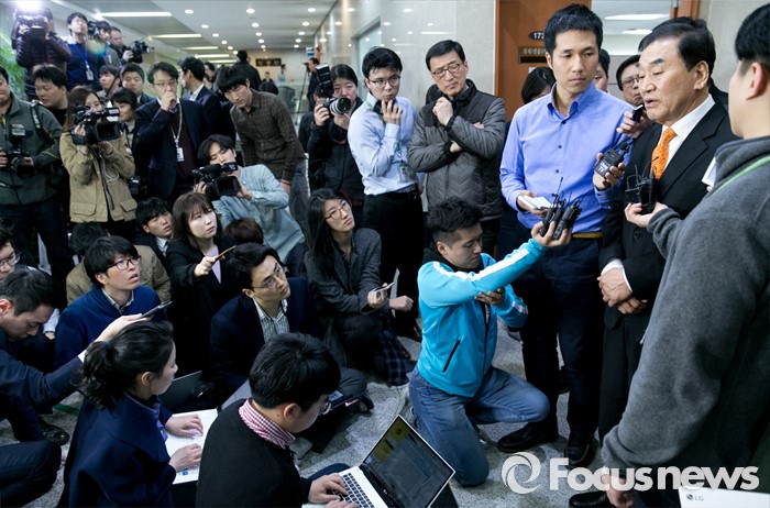 (서울=포커스뉴스) 새누리당을 탈당한 이재오 의원이 24일 오후 서울 여의도 국회 정론관에서 20대 총선 무소속 출마 기자회견을 마친 뒤 취재진 질문에 답하고 있다.