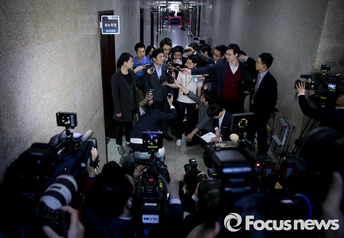 (서울=포커스뉴스) 김무성 새누리당 대표가 유승민 의원 지역구를 포함 5개 지역에 대한 최종 의결 거부하고 부산으로 떠난 24일 오후 서울 여의도 국회에서 열린 비공개 최고위원 간담회에 원유철 원내대표가 참석하며 취재진 질문에 답하고 있다.