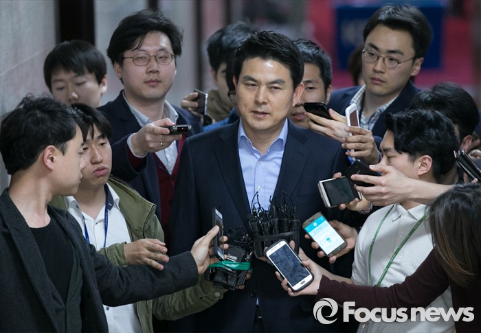 (서울=포커스뉴스) 김무성 새누리당 대표가 유승민 의원 지역구를 포함 5개 지역에 대한 최종 의결 거부하고 부산으로 떠난 24일 오후 서울 여의도 국회에서 열린 비공개 최고위원 간담회에 김태호 최고위원이 참석하며 취재진 질문에 답하고 있다.
