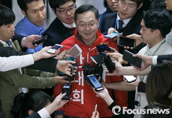 (서울=포커스뉴스) 김무성 새누리당 대표가 유승민 의원 지역구를 포함 5개 지역에 대한 최종 의결 거부하고 부산으로 떠난 24일 오후 서울 여의도 국회에서 열린 비공개 최고위원 간담회에 안대희 최고위원이 참석하며 취재진 질문에 답하고 있다.