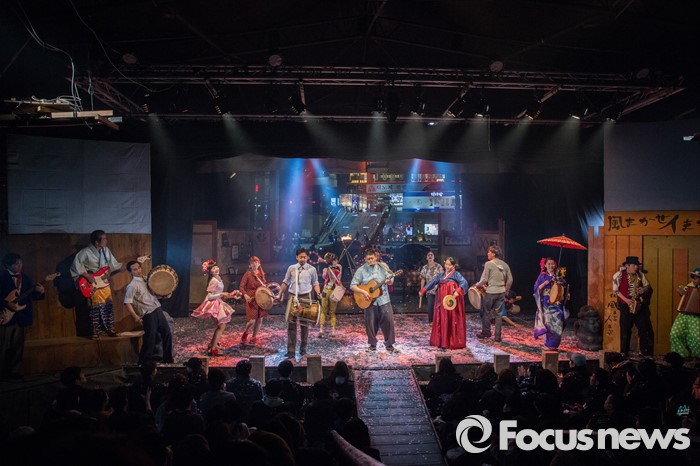 (서울=포커스뉴스) 24일 오후 서울 왕십릭역 광장 특설무대에 설치된 텐트극장에서 한·일 연극 공동 프로젝트 일환으로 열린 '백년, 바람의 동료들' 연극에서 일본극단 신주쿠양산박 단원들이 멋진 무대를 선보이고 있다.