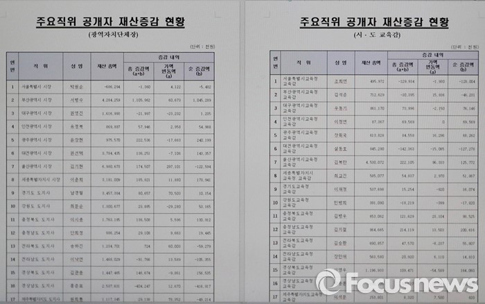 (서울=포커스뉴스) 정부공직자윤리위원회는 25일 오전 관할 공개대상자 1,813명에 대한 정기 재산변동사항 신고내역을 공개했다.