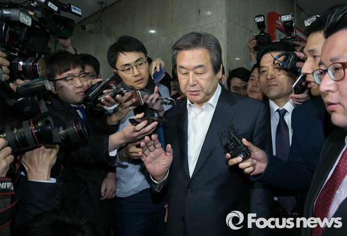 (서울=포커스뉴스) 김무성 새누리당 대표가 당 공천관리위원회의 결정에 반발해 유승민 의원 등 지역구 6곳에 대해 무공천을 선언해 갈등이 이어지고 있는 25일 오전 서울 여의도 당사로 김 대표가 취재진 질문을 받으며 들어서고 있다.