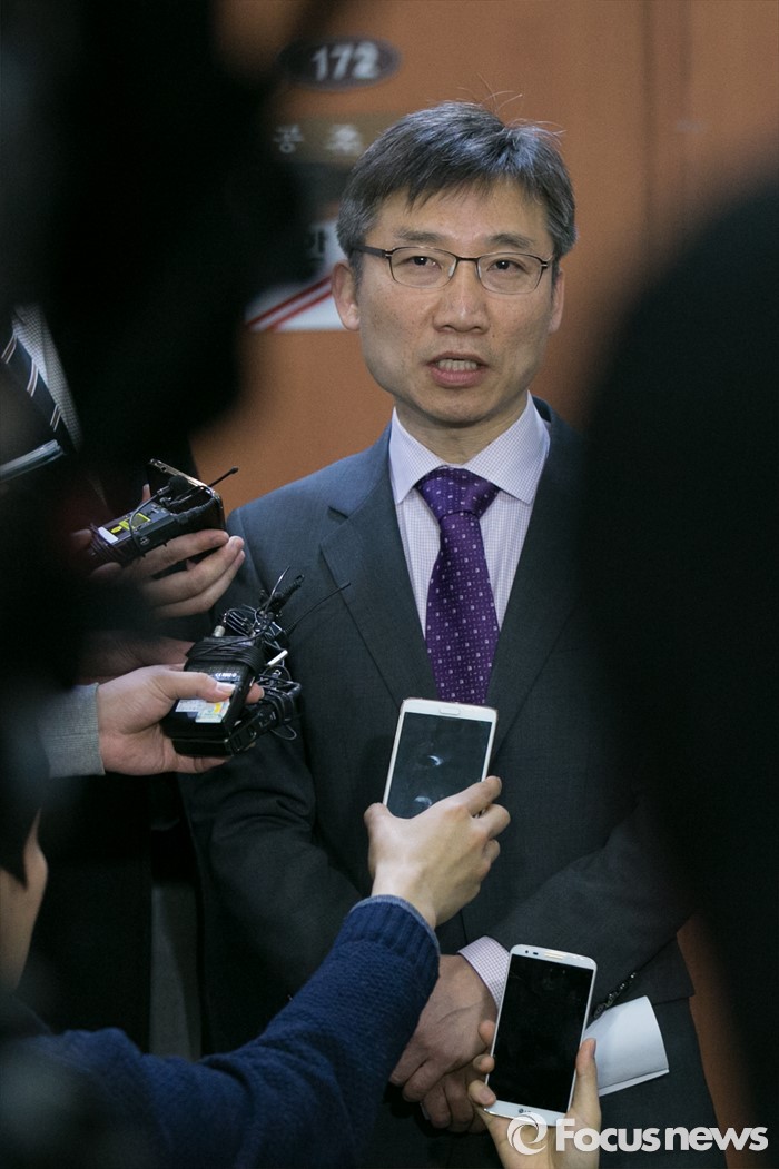 (서울=포커스뉴스) 이상규 전 통합진보당 의원이 25일 오전 서울 여의도 국회 정론관에서 기자회견을 마친 뒤, 기자들의 질문에 답변하고 있다. 지난 2014년 12월 헌법재판소의 통진당 해산결정으로 국회의원직을 박탈당한 이 전 의원은 민중연합당에 입당해, 이번 20대 총선에서 서울 관악을에 출마한다고 밝혔다.