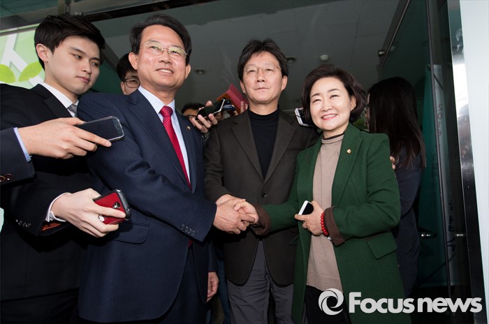 (대구=포커스뉴스) 25일 오전 대구 동구선거관리위원회에서 류성걸(대구 동갑), 유승민(대구 동을), 권은희(대구 북갑) 의원이 후보자 등록에 앞서 기념촬영을 하고 있다.