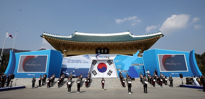 (서울=포커스뉴스) 25일 오전 국립대전현충원에서 열린 1회 서해수호의 날 기념식에 참석한 학생들이 추모공연을 하고 있다. <사진제공=국가보훈처>