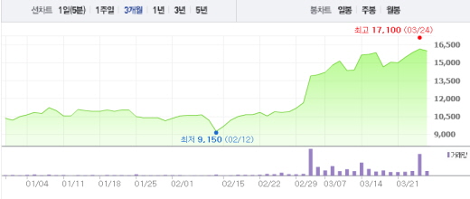 이날 코스닥 시장에서 NEW 주가는 전일대비 0.93%(150원) 하락한 1만6000원에 거래를 마쳤다. 이날 1%의 소폭 하락세를 보이긴 했지만 상승 흐름이 깨지지 않은 것으로 보인다.