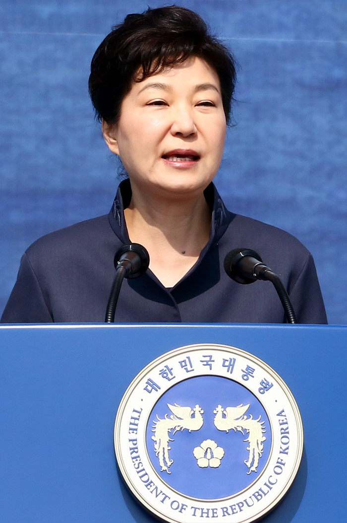 한편 정당별 지지도에서 새누리당은 지난 주보다 2%포인트 하락한 39%를 기록했고 더불어민주당은 1%포인트 상승한 21%로 나타났다. 국민의당은 8%로 변함없는 지지율을보였고, 정의당은 2%포인트 떨어져 최 하위인 5%를 기록했다.박근혜 대통령이 25일 오전 국립대전현충원에서 열린 1회 서해수호의 날 기념식에 참석해 기념사를 하고 있다. <사진제공=국가보훈처> 2016.03.25 포커스포토