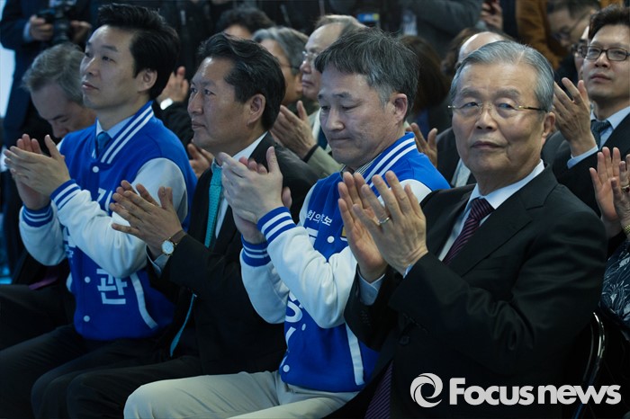 (용인=포커스뉴스) 김종인(오른쪽) 더불어민주당 비대위 대표가 25일 오후 경기도 용인시 표창원 후보 선거사무소 개소식에 참석해 표 후보 등 내빈들과 함께 박수 치고 있다. 오른쪽부터 김종인 대표, 표 후보, 정청래 의원, 김병관 김병관 경기 성남분당갑 후보.