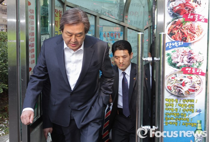| △ 당사 지하로 나서는 김무성 |