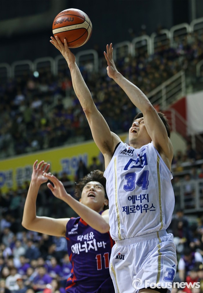 (고양=포커스뉴스) 25일 고양체육관에서 열린 2015-2016 프로농구 챔피언결정전 4차전 오리온-KCC경기에서 KCC 김효범이 오리온 허일영의 수비를 뚫으며 레이업슛을 쏘고 있다.