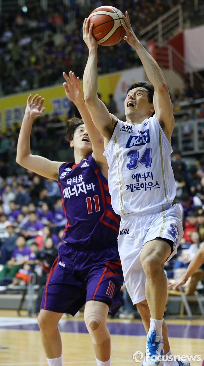(고양=포커스뉴스) 25일 고양체육관에서 열린 2015-2016 프로농구 챔피언결정전 4차전 오리온-KCC경기에서 KCC 김효범이 오리온 허일영의 수비를 뚫으며 레이업슛을 시도하고 있다.