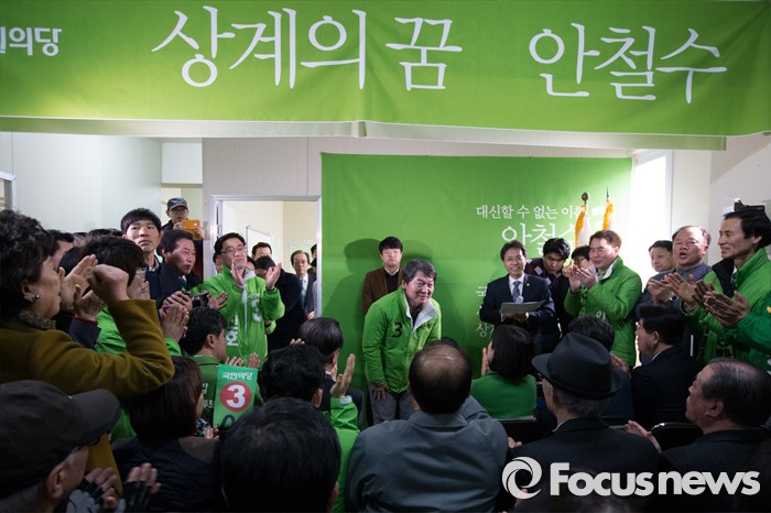 (서울=포커스뉴스) 안철수 국민의당 상임공동대표가 26일 오후 서울 노원구 노원병 선거사무소 개소식에서 내외빈에게 인사를 하고 있다.