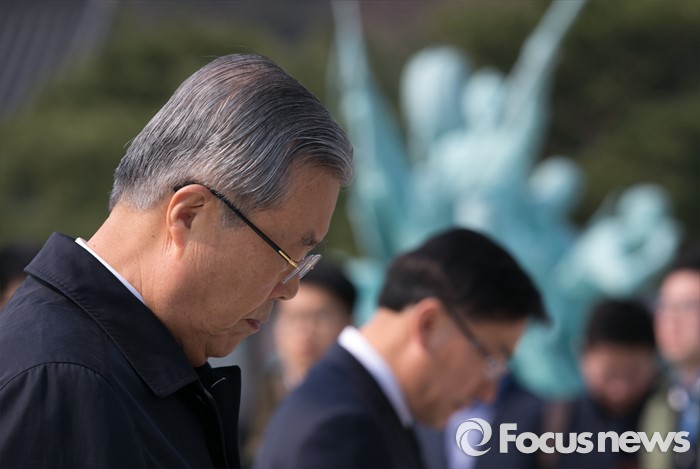 (광주=포커스뉴스) 김종인 더불어민주당 비대위 대표가 27일 오전 광주 북구 국립5·18민주묘지를 방문해 20대 총선 전남 및 광주지역 후보들과 함께 참배를 하고 있다.