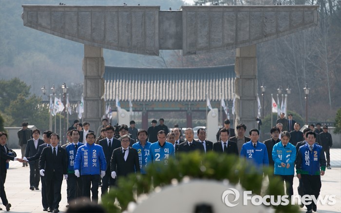(광주=포커스뉴스) 김종인 더불어민주당 비대위 대표가 27일 오전 광주 북구 국립5·18민주묘지를 방문해 20대 총선 전남 및 광주지역 후보들과 함께 참배를 위해 이동하고 있다.